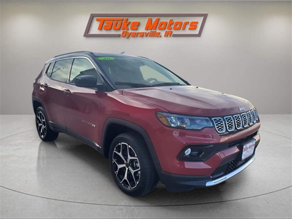 2026 Jeep Compass Limited in red hot pearlcoat. 23/31 City/Highway MPG