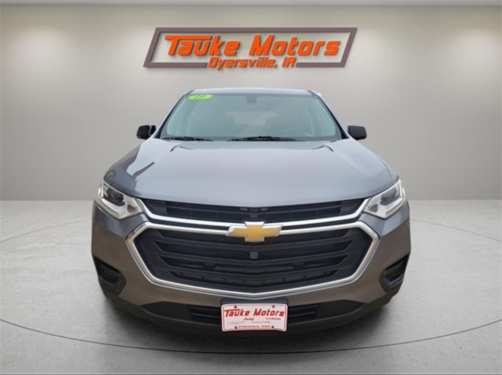 2019 Chevrolet Traverse LS AWD in Satin Steel Metallic with 3.6 Liter V6 and 9 Speed Transmission, **ACCIDENT FREE CARFAX REPORT**, **ONE OWNER**, **LOCAL TRADE**, Apple CarPlay/Android Auto, Bluetooth, Satellite Radio, Remote Start, Dual Zone Automatic Temperature Control, Fully Automatic Headlights, Remote Keyless Entry, Speed Control, Steering Wheel Mounted Audio Controls, 2nd Row Bench Seat, 18" Bright Silver Painted Aluminum Wheels.