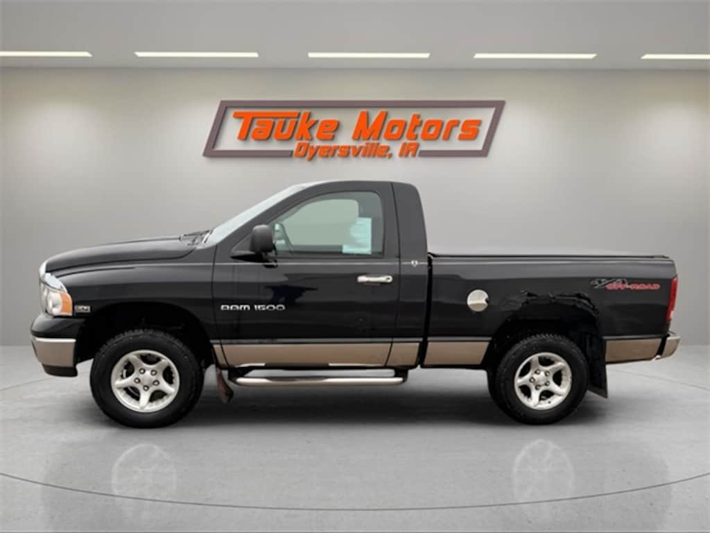 2004 Dodge Ram 1500 SLT Regular Cab Long Box 4WD in Black Clearcoat with a 5.7 Liter V8, Automatic Transmission, **ACCIDENT FREE CARFAX REPORT**, Air, Tilt, Cruise, Power Windows, Power Locks, AM/FM CD, Travel Computer, Keyless Entry, Aluminum Wheels, Side Steps, Fog Lights, Tonneau Cover, Bed Liner, Posi Rear End, Off Road Package.