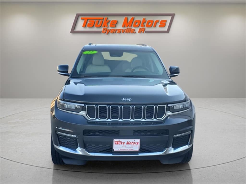 2022 Jeep Grand Cherokee L Limited 4x4 in Rocky Mountain Pearlcoat with a 3.6 Liter V6, 8-Speed Automatic, **ACCIDENT FREE CARFAX REPORT**, **ONE OWNER**, **LOCAL TRADE**, **NEW TIRES**, Heated 1st and 2nd Row Seats and Steering Wheel, Memory Drivers Seat, 2nd Row Buckets, Dual Pane Sunroof, 20" Aluminum Wheels, 10.1" Touchscreen Radio, 506 Watt Amp, 9 Amplified Speakers with sub, Sirius, Bluetooth, Proximity Keyless Entry, Remote Start, Adaptive Speed Control,