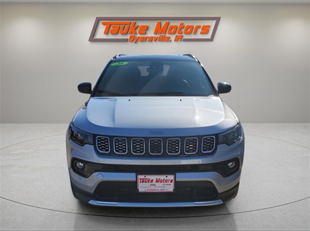 2025 Jeep Compass Limited in Silver Zynith Metallic Clearcoat with a 2.0 Liter 4 Cylinder, 8-Speed Automatic, **ACCIDENT FREE CARFAX REPORT**, **ONE OWNER**, Power Seat, Heated Seats, Heated Steering Wheel, 10.1" Touchscreen Radio, Sirius, Bluetooth, Dual Zone Auto Temp Control, Adaptive Cruise Control, Blind Spot Detection, Active Lane Management, Backup Camera and Sensors, Travel Computer, Keyless Entry, Remote Start, Aluminum Wheels,
