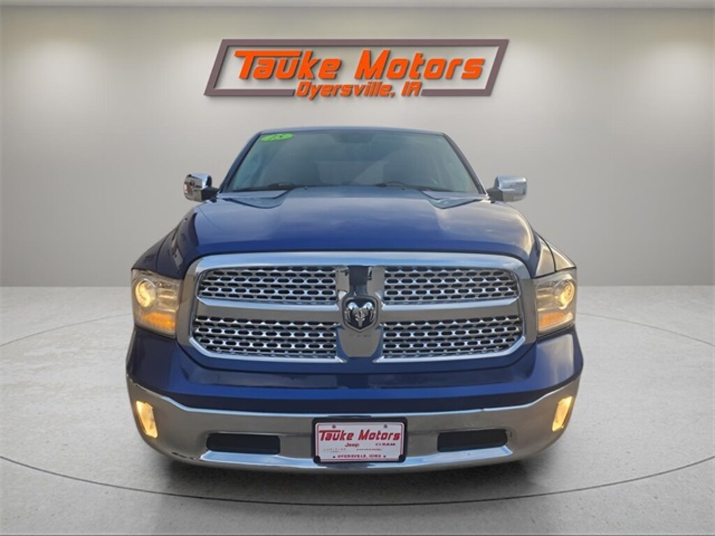 2015 Ram 1500 Laramie Crew Cab Short Box 4x4 with 5.7 Liter Hemi and 8 Speed Transmission in Blue Streak Pearlcoat, **LOCAL TRADE**, Heated/Vented Seats, Heated Second Row Seats, Remote Start, Proximity Keyless Entry, Auto Dimming High Beam Headlights, Fog Lights, RainSense Windshield Wipers, 8.4" Touch Screen Radio with Navigation, 9 Alpine Speakers with Subwoofer, Dual Zone Automatic Temperature Control, Garage Door Transmitter, Memory seat, ParkView Rear Back-Up Camera, Power 10-Way Memory Driver & 6-Way Passenger Seats, Spray In Bedliner, Truxedo Lo-Pro Tonneau Cover, Steering Wheel Mounted Audio Controls, Anti-Spin Differential Rear Axle, 20" Chrome Clad Aluminum Wheels.