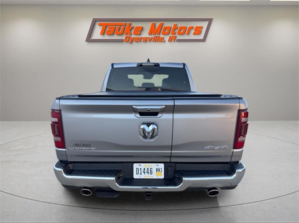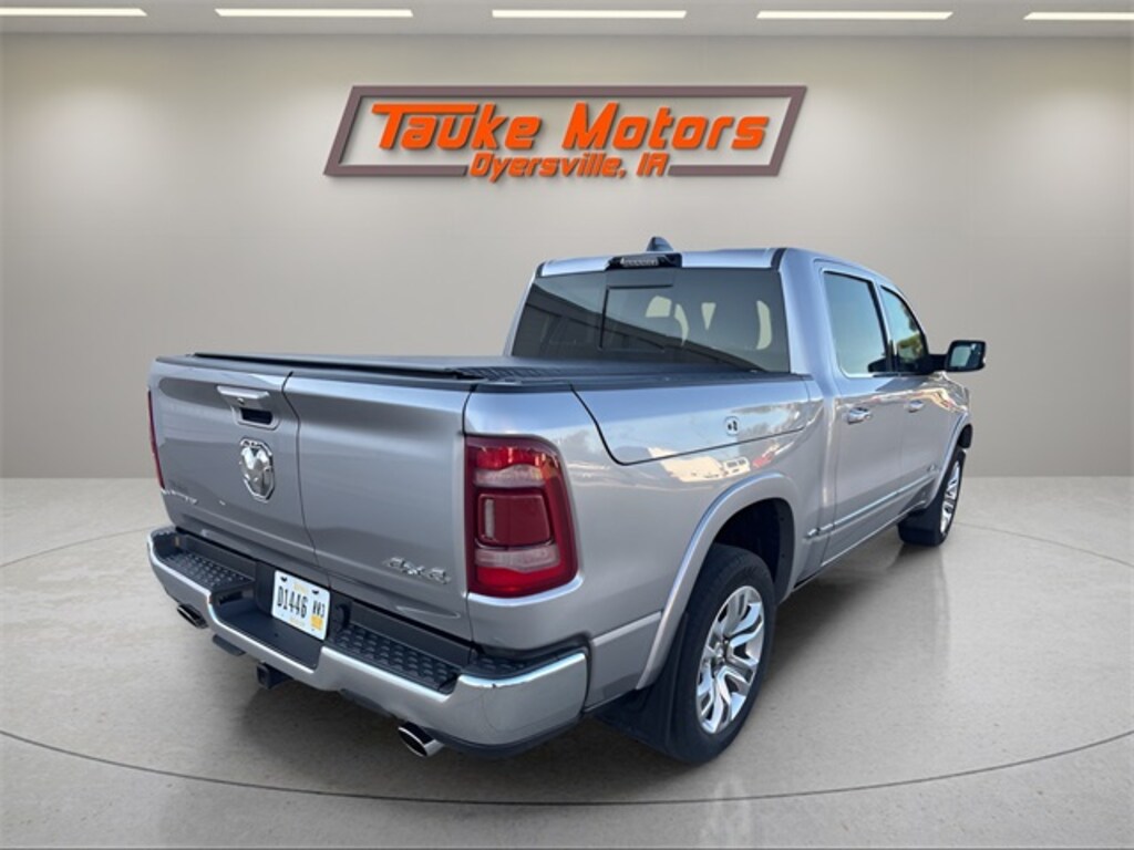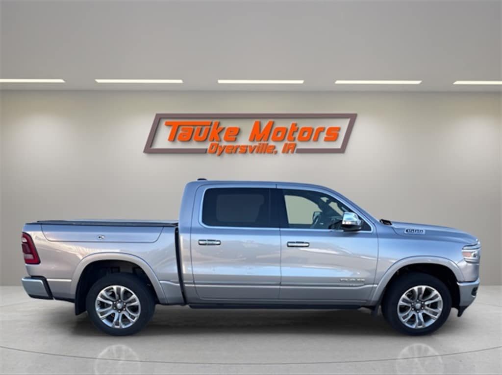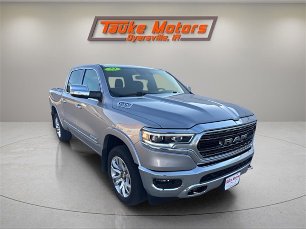 2022 Ram 1500 Limited in Billet Silver Metallic Clearcoat with a 5.7L HEMI V8, 8-Speed Automatic, **ONE OWNER**, **LOCAL TRADE**, DEALER MAINTAINED, **LEATHER**, **NAVIGATION**, 33 Gallon Fuel Tank, Adaptive Cruise Control w/Stop & Go, Auto High-beam Headlights, Bed Utility Group, Digital Rearview Mirror, Exterior 115V AC Outlet, Front Dual Zone A/C, Front Fog Lights, Fully Automatic Headlights, Heads-Up Display, Heated Rear Seats, Heated Second Row Seats, Ventilated Front Seats, Ventilated Rear Seats, Heated Steering Wheel, Lane Keep Assist, LED CHMSL Lamp, Limited Level 1 Equipment Group, Memory Seat, Multi-Function Tailgate, Parallel & Perp Park Assist w/Stop, ParkView Rear Back-Up Camera, Pedestrian Emergency Braking, Power 4-Way Driver Lumbar Adjust, Power 4-Way Passenger Lumbar Adjust, Power 8-Way Driver & Passenger Seats, Power-Folding Mirrors, Premium Leather Trimmed Bucket Seats, Uconnect 5 Navigation Radio w/12.0" Display, harman/kardon 19 Speaker Premium Sound, Steering Wheel Mounted Audio Controls, Rain Sensing Wipers, RamBox Cargo Management System, Remote Keyless Entry, Surround View Camera System, and 20" Aluminum Painted/Polished Wheels.